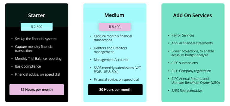 As soon as you start a business, appoint an accountant, so you can track all your income and expenses for the business, so you can submit annual returns to SARS and CIPC, to stay compliant easily.